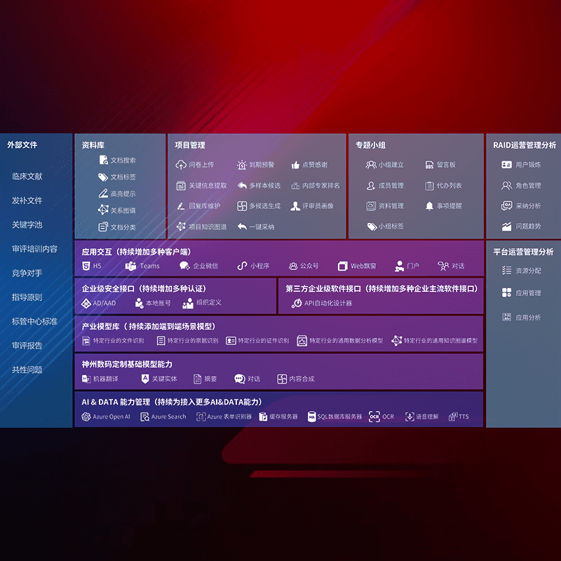 医疗器械产品上市前,,,,要熟悉严格与繁复评审标准,,,,整理分析监管机构指导文件中的海量信息。。企业急需一个智能化解决方案,,提升知识管理效率,,,,提高评审通过率,,,,以提升其市场竞争力。。